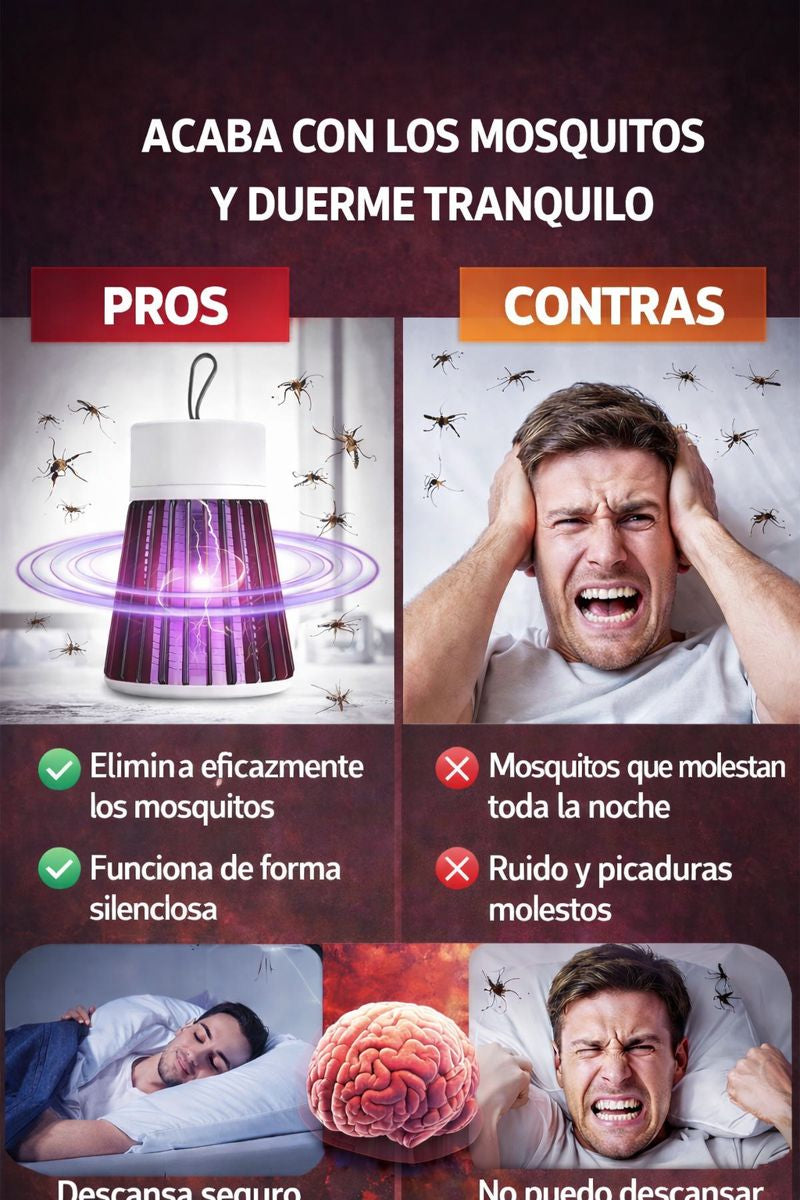 "Elimina los Mosquitos y Moscas sin Ruido, sin Químicos y sin Interrupciones. Una Solución Innovadora que Te Deja Dormir Tranquilo, ¡Sin Más Molestias!"