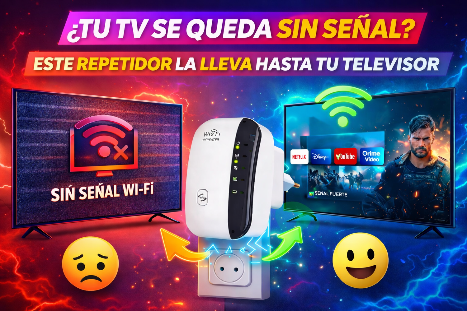 Este repetidor amplifica y extiende la señal de tu router, permitiendo que tu TV vuelva a conectarse de forma estable, sin cortes y sin fallas, incluso en habitaciones alejadas.