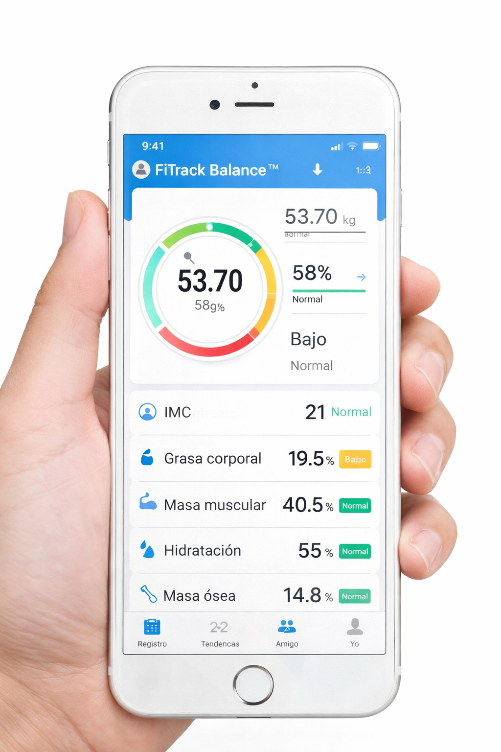 Mide IMC, grasa corporal, masa muscular, masa ósea, hidratación y metabolismo.